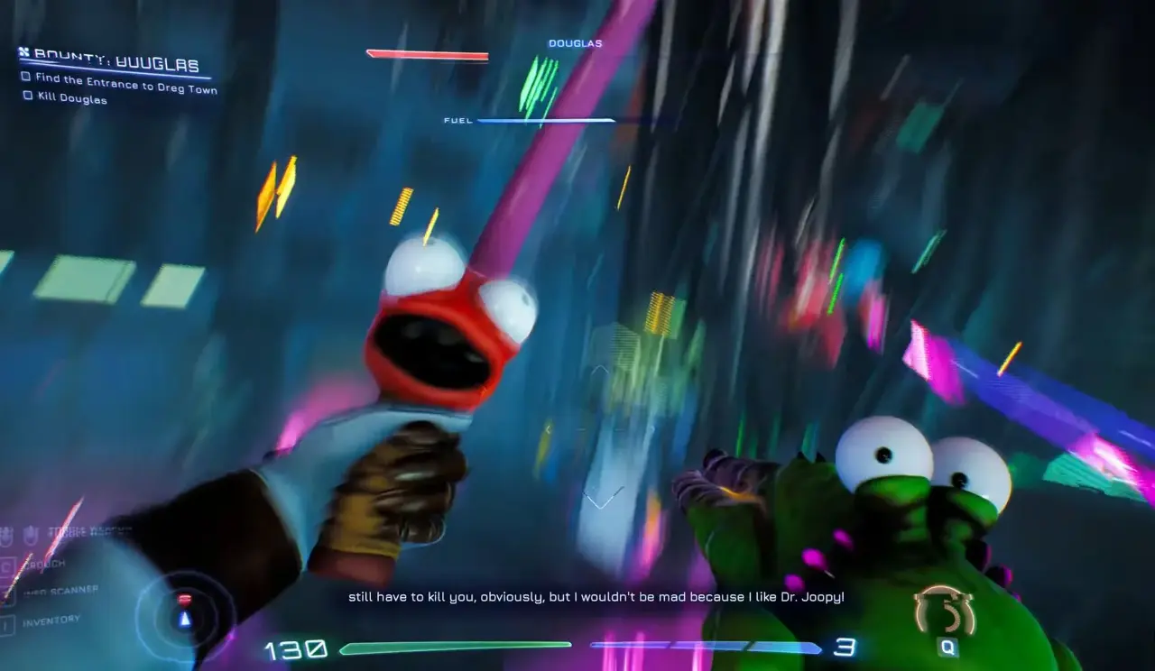 도시와 다른 세계를 탐험하는 동안, 당신은 전투에서 당신에게 도움을 줄 다른 개틀링 몇 명을 만나게 될 것입니다. 그래플링 훅으로. 이 개틀링은 확실히 듣기 짜증날 수 있지만 다행히도 그들의 목소리는 끌 수 있습니다 . 그러나 결국 모든 것은 개인적인 취향에 달려 있으며 Roiland의 다른 작품의 팬으로서 게임의 저속한 글이 놀랍도록 재미 있다는 것을 알았습니다.