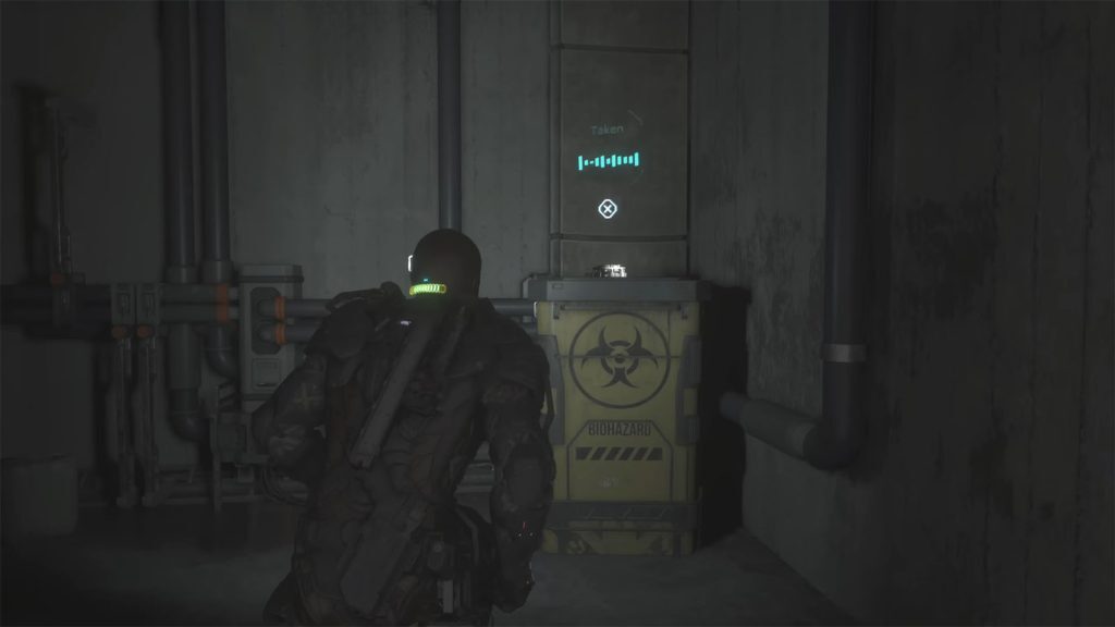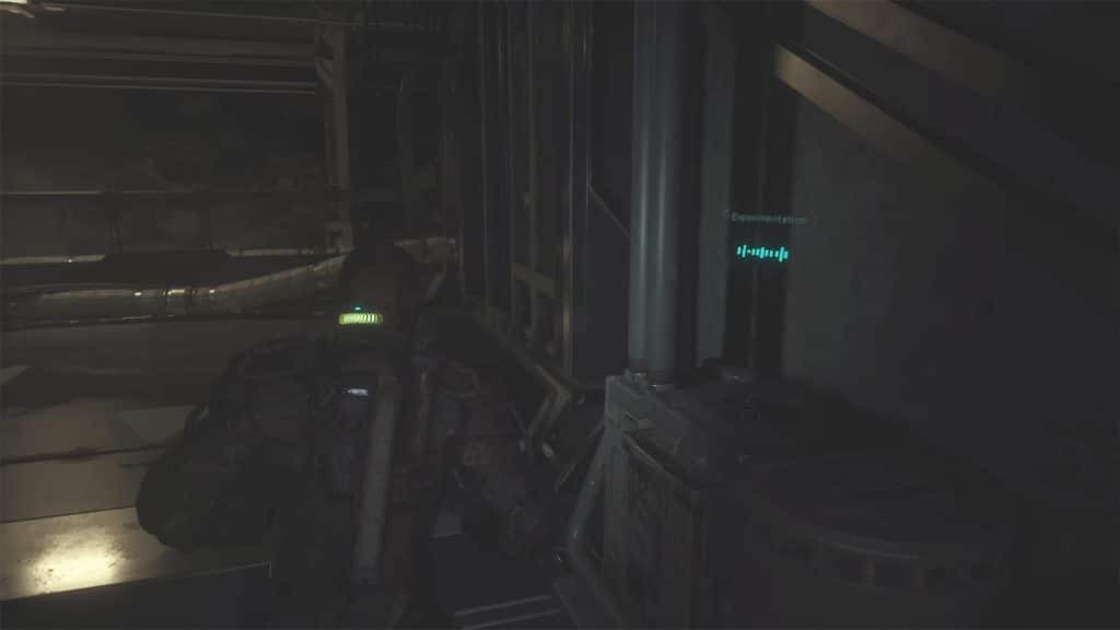 대화가 끝나면 감방 밖으로 나가 우회전하십시오. 기생충이 들어 있는 상자를 무시하고 보안 문을 향해 걸어가 앞의 길을 따라갑니다. 다음 방에는 리포지 스테이션이 있습니다.