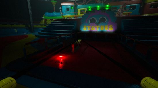 게임 스테이션으로 돌아가서 기차 앞의 두 번째 레버가 이제 빨간색으로 깜박입니다. Wack-A-Wuggy 방을 열려면 당기십시오. 들어가자마자 미니게임이 시작됩니다.