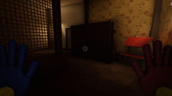 두 번째 챕터를 시작하면 첫 번째 챕터가 끝난 바로 그 지점, 즉 사건에서 그녀를 풀어준 Poppy의 방에서 시작하게 됩니다. 돌아서서 인형의 집이 잔뜩 있는 방에 도착할 때까지 복도를 따라 다시 걸어가세요. 하얀 문 앞에서 기울어진 옷장을 찾으려면 오른쪽을 보세요. 흰색 문을 통해 공장의 다음 부분으로 가십시오.