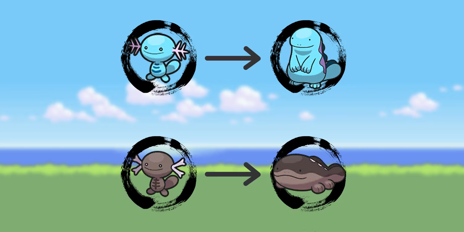 1세대의 나방과 나비 같은 포켓몬은 각각 고유한 진화 라인을 가지고 있지만, 3세대에 해당하는 포켓몬은 대신 동일한 포켓몬에서 진화합니다. 그러나 이상하게도 플레이어가 첫 번째 진화가 발생할 때까지 진화 라인의 어떤 분기를 택할지 알 수 있는 방법이 없습니다.