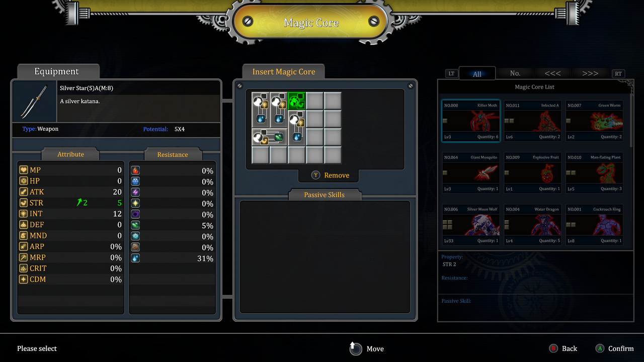 Frontier Hunter 고유의 주요 핵심 요소 중 하나 는 Magic Core입니다. 적을 쓰러뜨리면 때로 쓰러뜨린 적의 정수인 코어를 드롭한다. 각 코어는 특정 그리드에 고유한 각 모양으로 무기에 삽입될 때 통계와 고유한 버프를 부여합니다. 각 "본질"이 특정 조각에 맞는다는 점 에서 Atelier 시리즈 와 유사합니다 . 이렇게 하면 다소 기본적인 무기를 플레이어의 특정 요구에 맞게 조정 가능한 맞춤형 강국으로 바꿀 수 있습니다.