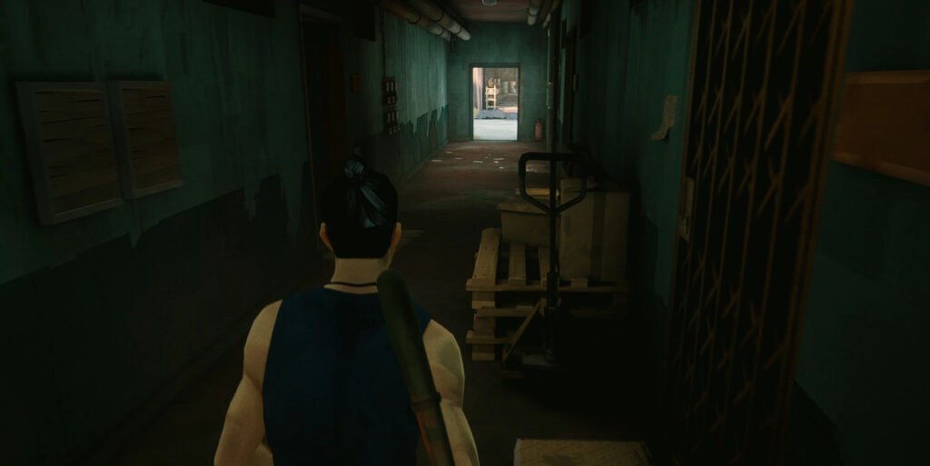 Club Flyer를 얻으면 다시 긴 창문을 통해 뛰어들어 문으로 들어갑니다. 당신은 복도에서 자신을 찾을 수 있습니다; 그 옆에 있는 문으로 들어갑니다. 한 쌍의 강인한 적이 당신을 기다리고 있지만 파이프를 가져오면 충분히 빨리 내려갈 것입니다.그들 중 하나에 달려가 일련의 강공격을 사용하여 그들의 구조를 빠르게 부수십시오., 하지만 욕심내지 마세요! 다른 적이 가까워지면 피하고 책상을 사용하여 다시 분리하십시오.