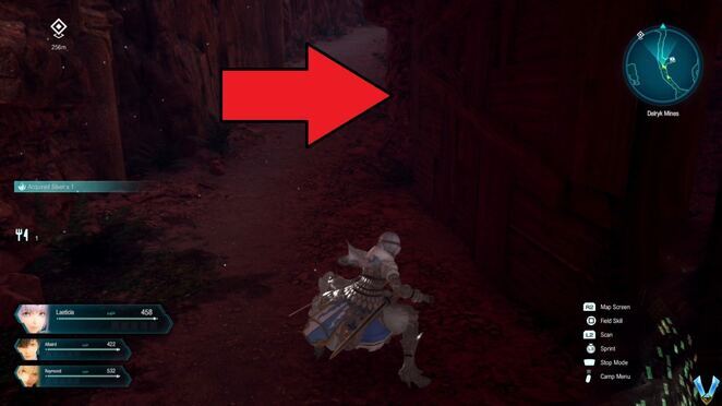 협곡을 통해 동쪽으로 트레킹을 계속하면 오른쪽에 있는 다음 작은 동굴은 비어 있으므로 무시해도 됩니다. 더 남쪽에는 처리해야 할 또 다른 Eyepatcher 적이 있습니다. 그와 Harpies를 죽이고 약간의 DP를 위해 남서쪽에 있는 작은 동굴로 들어가십시오. 계속해서 남쪽으로 가다가 작은 공터에 도착하면 그 지역을 스캔하여 근처에 있는 상자를 찾으십시오.