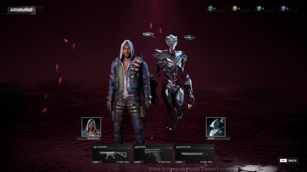 Runner와 Companion의 조합은 선택한 무기 로드아웃과 마찬가지로 자신에게 맞는 특정 플레이 스타일을 개발하는 데 필수적입니다. 권총, 산탄총, 돌격 소총, LMG 및 저격용 소총을 사용할 수 있습니다. 모두 성능 모드와 무기 스킨으로 사용자 정의할 수 있습니다. 또한 모드별로 하나씩, 각 러너에 대해 두 개의 개별 특전 풀이 있습니다. 관련 활동에서 각각에 대한 모드를 획득하고 활성화하여 잠금을 해제합니다.