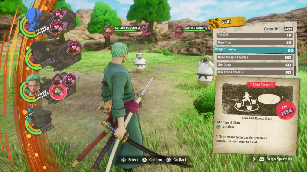 Zoro의 기술은 여러 적을 대상으로 하고 많은 피해를 입힐 수 있기 때문에 저는 Zoro로 플레이하는 것이 매우 즐거웠습니다. 하지만 멀리 떨어진 적의 경우 우솝이나 루피 같은 원거리 캐릭터에 더 의존했습니다.