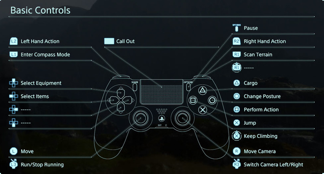 다음은 Death Stranding의 기본 제어 체계입니다.