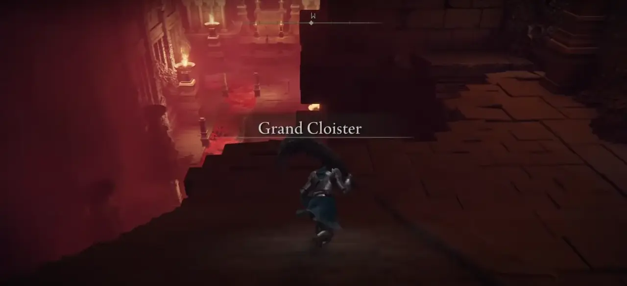 마침내 장소에 도착하면 Grand Cloister Site of Lost Grace를 발견할 때까지 직진합니다. 실제로 후자에서 서쪽으로 이동해야 하지만 그렇게 하는 데 사용할 수 있는 적절한 통로가 없습니다. 따라서 좁은 선반을 이용하여 “Grand Cloister” 제목 스트립이 나타나는 곳에서 오른쪽으로 이동하여 해당 지역의 아래쪽 부분으로 내려가십시오.
