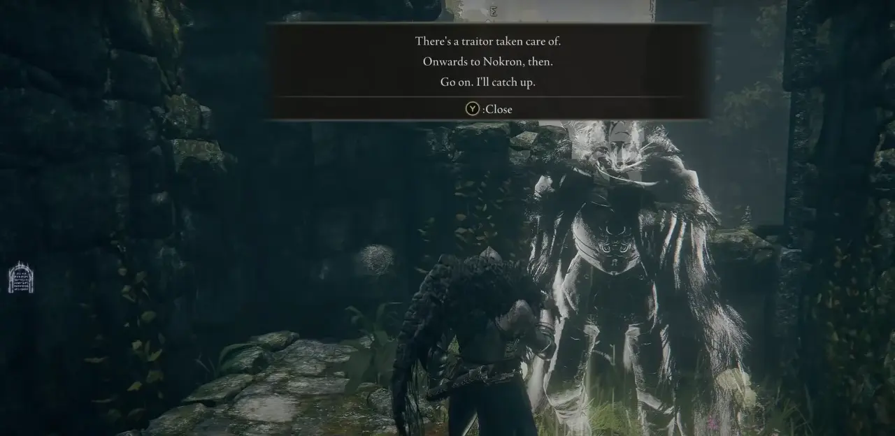 여기에서 계속 진행하는 것이 중요하지는 않지만 Mistwood Ruins 지역을 돌면서 Blaidd가 남긴 메시지를 찾는 것이 좋습니다. 폐허를 돌아다니면 프롬프트를 발견할 수 있습니다. 우리의 반늑대 친구는 임무를 진행하라고 하고 처리해야 할 반역자가 있다고 말할 것입니다.