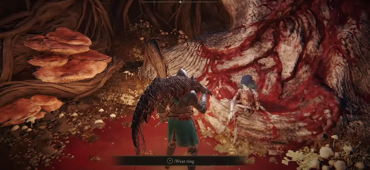 Manus Celes 대성당의 Grace Site 근처에는 상당한 구멍이 있습니다. 당신은 그것에서 뛰어내려 내부의 지하층에 착지할 수 있을 것입니다. 그렇게하자마자 온통 피로 뒤덮인 채 앉아있는 마녀 Ranni를 발견하게 될 것입니다. 그녀에게 다가가 "이벤트 액션" 버튼을 누르면 반지를 끼게 됩니다.