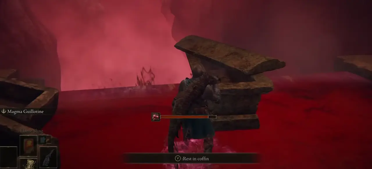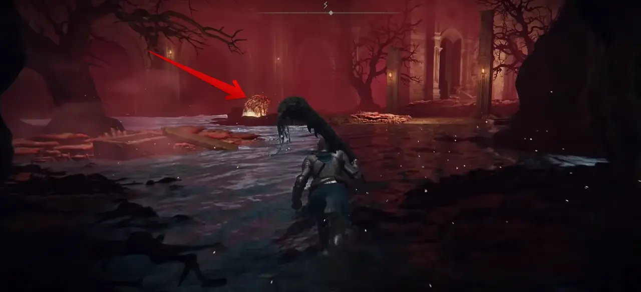문제의 퀘스트 라인을 계속하려면 Lake of Rot Shoreside Site of Grace에서 호숫가에 도착할 때까지 직진하십시오. 여기에서 모퉁이 영역에 접근하고 멀리 플랫폼을 찾으십시오. 썩어가는 호수에 완전히 죽는 것을 피하기 위해 가능한 한 빨리 그곳으로 달려가십시오. 당신이 거기에 있을 때, 승강기와 같은 영역에 서서 우르릉거리는 소리를 촉발시키십시오. 실제로 썩은 호수가 지표면에 약간의 흙을 뱉어내어 그 위를 걷고 호수를 건널 수 있도록 유도할 것입니다.