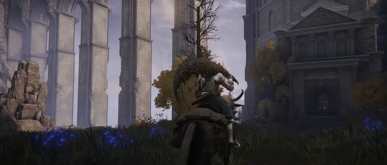 먼저 이 지역의 시작 지점에서 잃어버린 은총의 현장을 활성화한 다음 북동쪽으로 향합니다. 멀리서 황폐한 교회를 발견할 수 있고 가까이 다가가는 순간 용, 정확히는 Glintstone Dragon Adula 가 나타날 것 입니다.