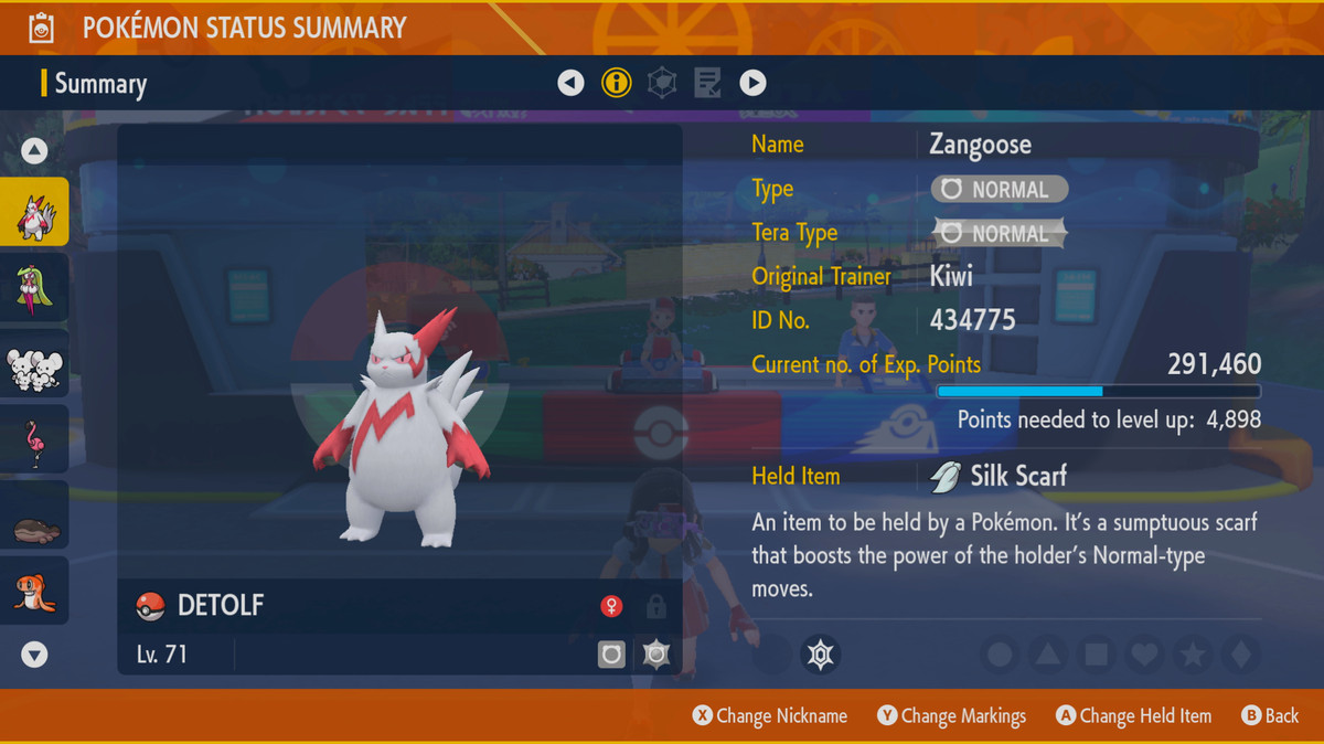 이렇게 하려면 X를 눌러 메뉴를 열고 이름을 변경하려는 포켓몬을 선택한 다음 "요약 확인"을 선택하십시오. 이 화면에서 X를 눌러 닉네임을 변경할 수 있습니다.
