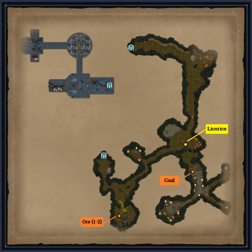 - 6 - 고블린 광산(옆에 있는 "고블린 광산" 던전과 혼동하지 말 것). 고블린은 가장 먼 방에서 리스폰되며 철광석/석탄 농장에 적합합니다. 장소 자체에는 종종 금을 포함하여 3-4개의 광석 노드가 있습니다.