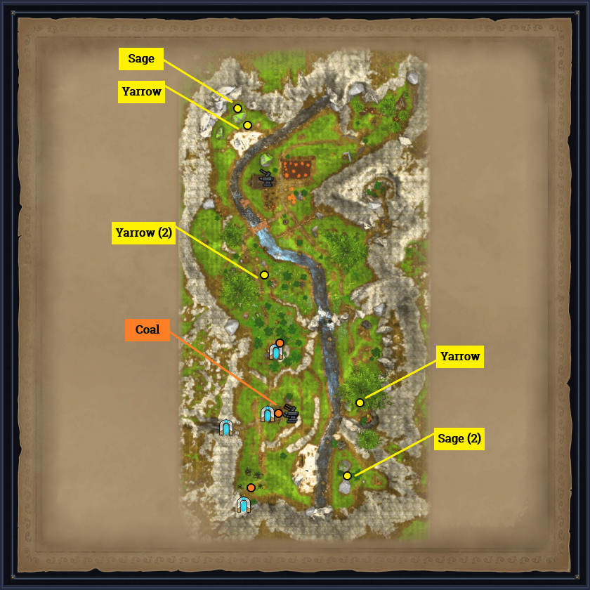 Crafting and Medicine 직업을 위한 시약을 찾기 위한 몇 가지 지도.