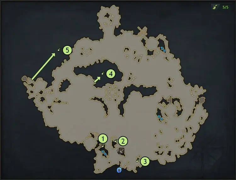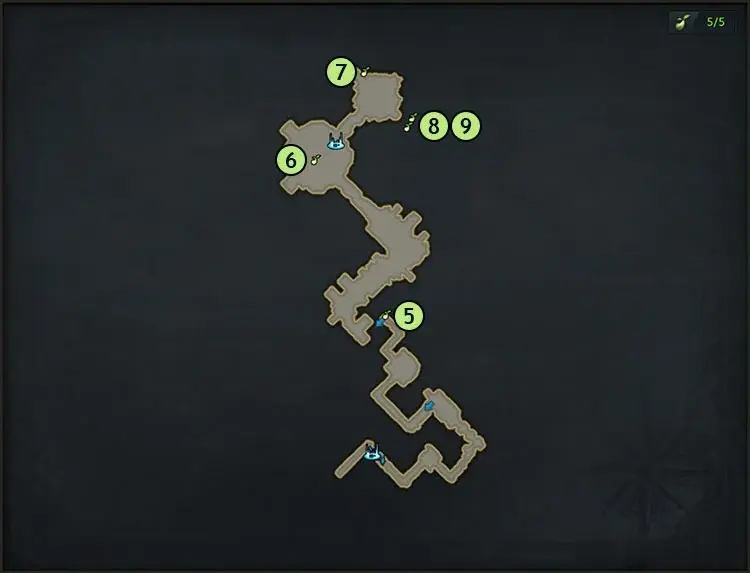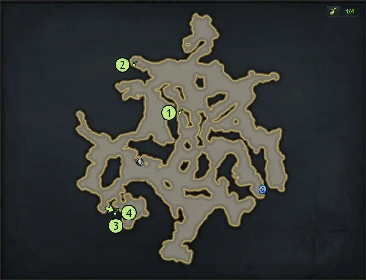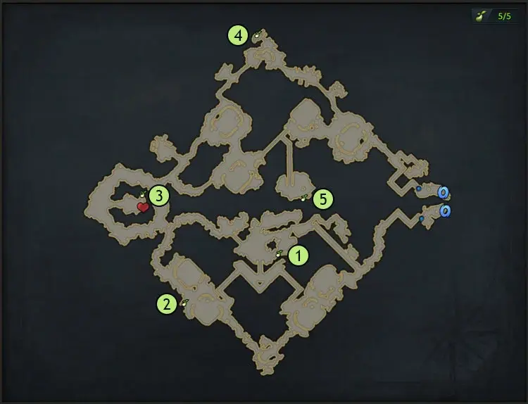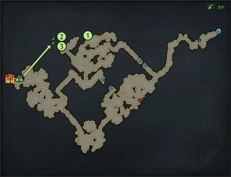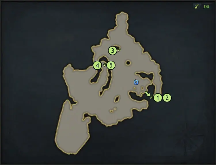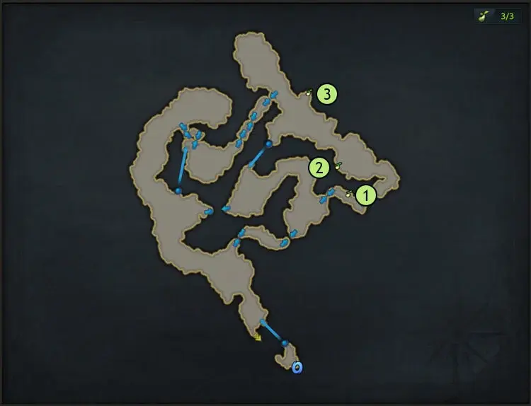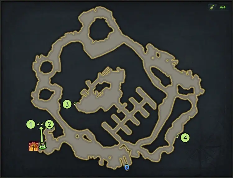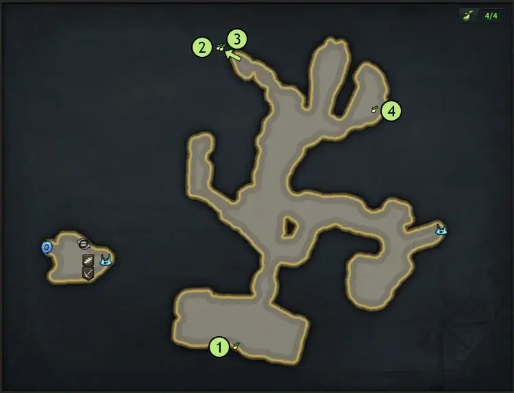 지도의 빈 공간에 있는 세 개는 묘지의 남서쪽 모서리로 이동하여 환경 마커와 상호 작용하여 절벽 면을 올라가면 접근할 수 있습니다. 두 개의 씨앗은 깨진 알이 있는 둥지 근처 지역의 뒤쪽에 있고 세 번째 씨앗은 그 둥지에서 남서쪽으로 약간 떨어진 나무 아래에 있습니다.