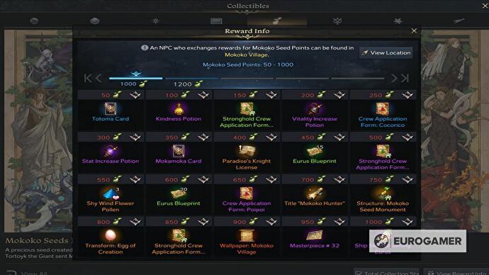 Mokoko Seeds 50개를 수집할 때마다 보상을 잠금 해제합니다. 다양한 물약, 카드, 선원, 의상, 심지어 Lost Ark에서 가장 빠른 선박 중 하나까지 손에 넣을 수 있습니다.