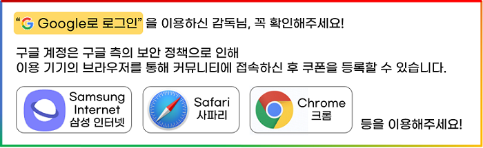 ※ 게임에 로그인하는 계정으로 커뮤니티에 로그인하신 후 쿠폰을 입력하셔야 이용하시는 계정으로 보상을 수령하실 수 있습니다.
