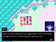 이제 다른 종류의 대화 상자가 위에 떠 있는 Kel 과 대화해야 합니다. 이것은 약간의 대화를 유발하고 Hero 는 Mari 와 Basil (아직 만난 적이 없는 다른 친구)이 놀이터에서 피크닉에 초대 했음을 기억할 것 입니다. 수락하면 이제 이 방을 나갈 수 있습니다. 나가려면 오른쪽 상단의 계단을 이용하십시오. 도중에 뱀이 나타나 조개 50개 (게임 내 화폐)를 줄 것입니다.