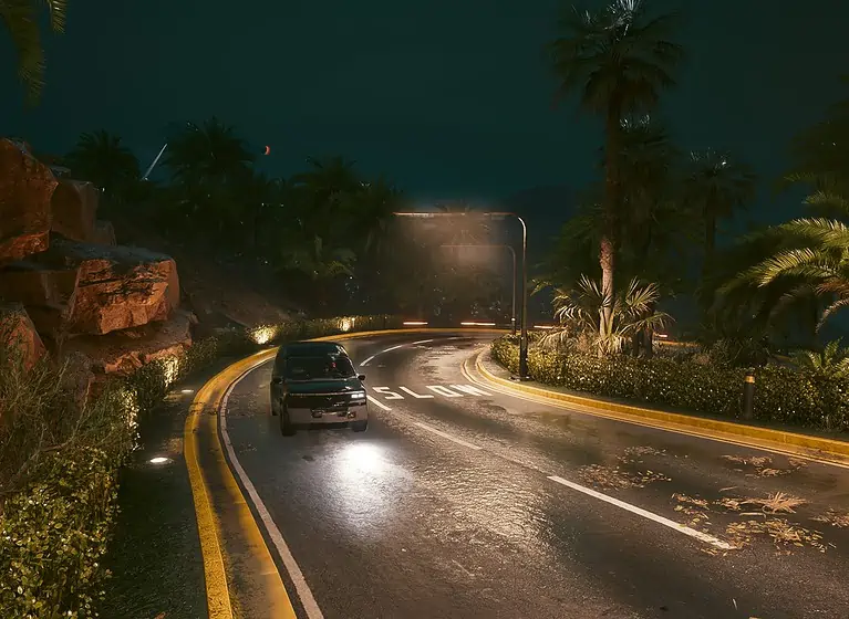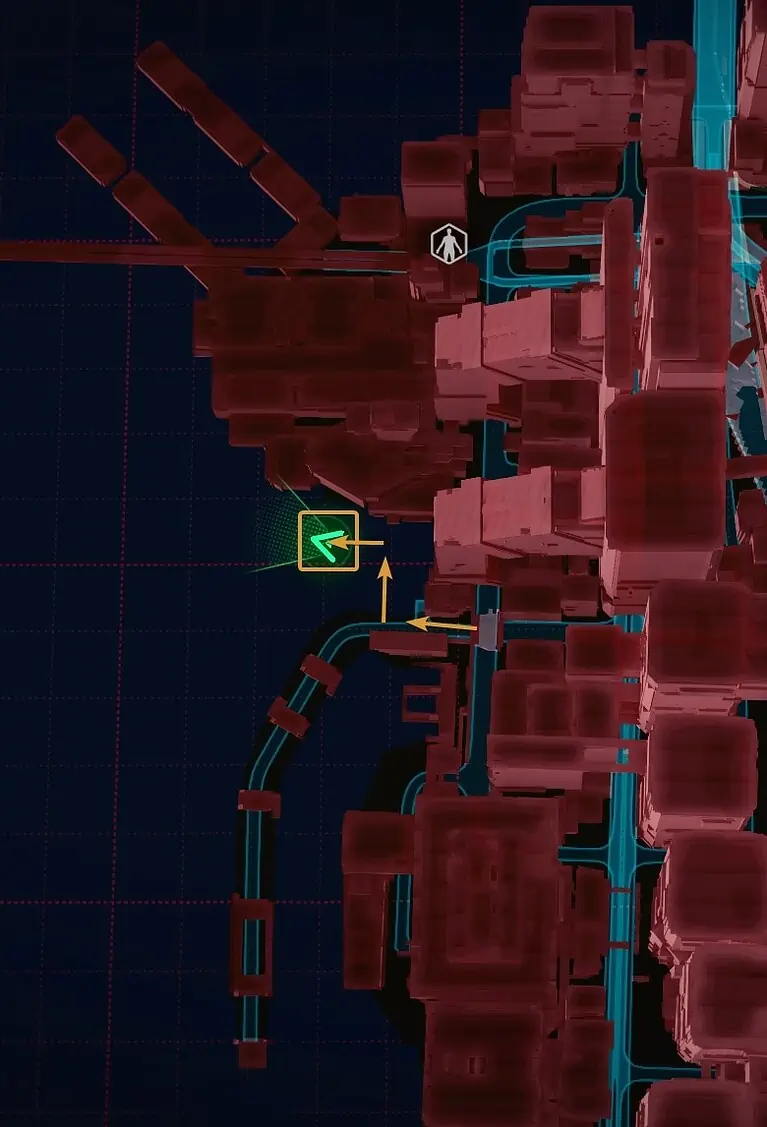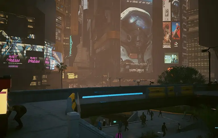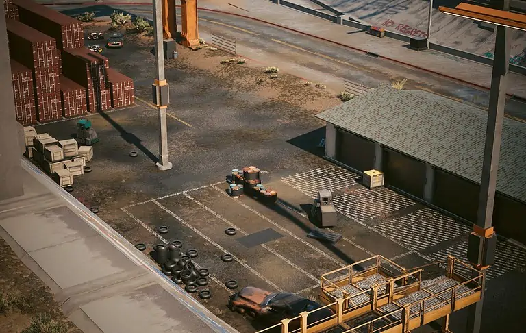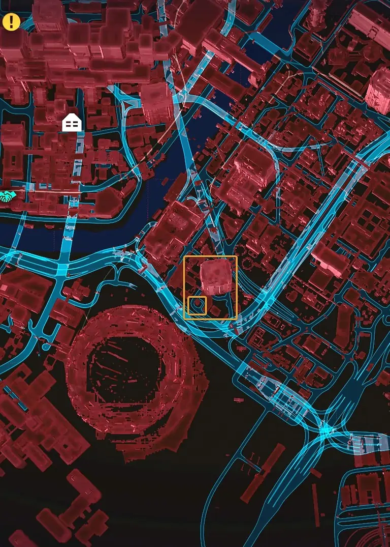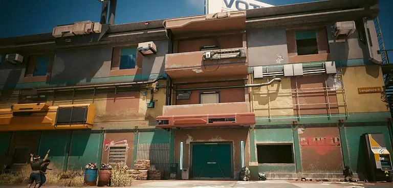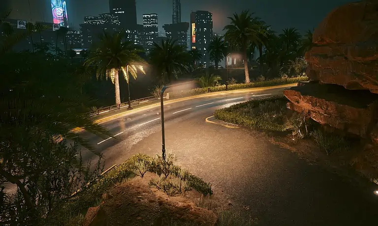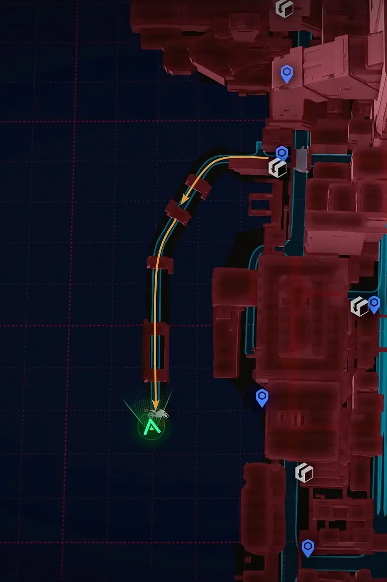 Night City의 서쪽, City Center의 Downtowm 지역에서 Lucy와 David가 저녁 달리기를 하는 정확한 위치를 찾을 수 있습니다.