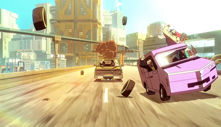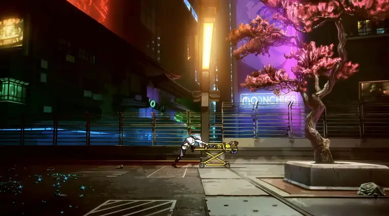 힘들고 긴 하루를 보낸 크루는 터보의 식당 앞 주차장에서 거리 파티로 성공적인 공연을 자축한다. 장소는 Lucy의 아파트가 있는 Megabuilding H8 바로 옆 Westbrook의 Japantown에 있습니다. 이것은 Faraday가 나타나 파티를 충돌시키는 것과 같은 장소입니다.