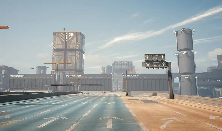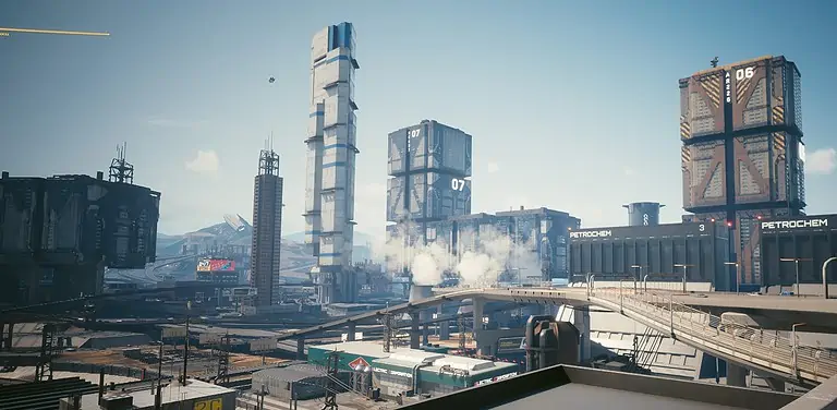 다음 쇼는 차가 남서쪽으로 향할 때 Megabuilding H6와 Petrochem 구조물이 내려다보이는 고속도로에서 찍은 것입니다. 이것은 그들이 교통 체증을 만났고 상황이 좋지 않은 곳이었습니다.