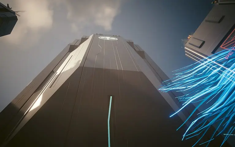 거기에서 David는 Corpo Plaza와 Arasaka Academy 건물 입구까지 계단을 올라갑니다.