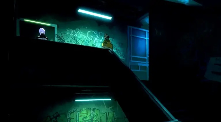 흥미로운 사실은 Lucy의 아파트 복도가 Cyberpunk 2077에서 Judy의 아파트가 있는 건물의 복도와 동일하다는 것입니다. 같은 낙서, 같은 계단, 같은 천장 조명. 단지 다른 위치.