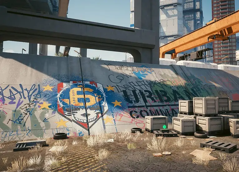 입구에는 에피소드 2에서 처음 본 6번가 갱 로고가 표시되어 있습니다.