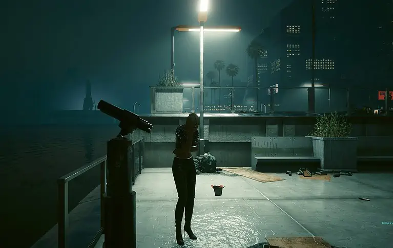 Ripperdoc을 방문한 후 David와 Lucy는 그녀의 아파트로 향합니다. 그녀는 Westbrook의 Japantown에 살고 있습니다. 그녀가 응급 의료 카트를 멈추는 이전 장면에서 그리 멀지 않은 곳에 있습니다.