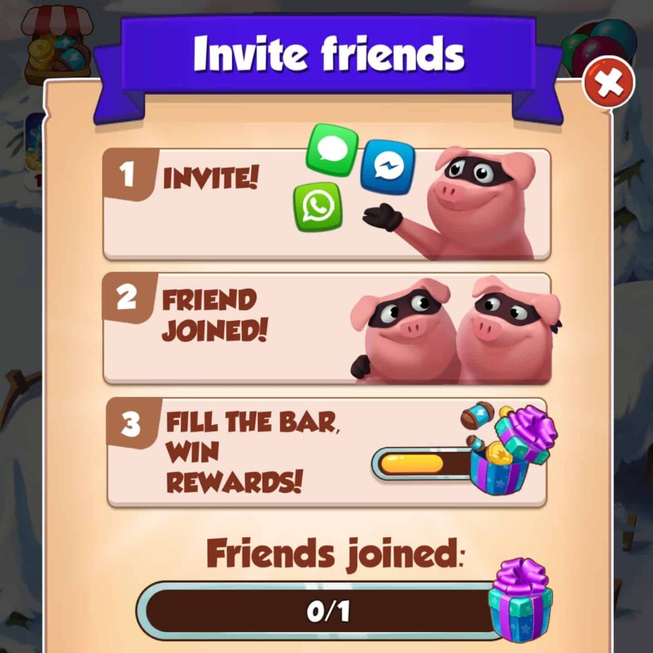 Facebook Messenger 또는 기타 소셜 미디어 또는 커뮤니케이션 플랫폼을 통해 친구들을 초대하여 이 중독성 있는 게임을 친구들과 공유할 수 있습니다. 귀하의 링크를 사용하여 코인 마스터를 성공적으로 플레이한 한 친구는 무료 스핀을 제공합니다.