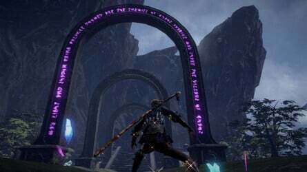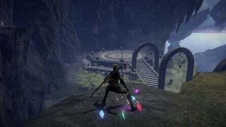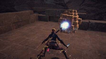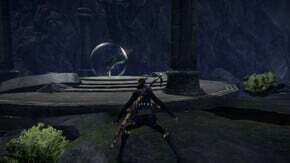 바로 옆에 있는 다리 끝에 둥근 건물도 보입니다. 여기 전면의 임시 문은 비활성화되어 있으므로 옆으로 이동하여 벽의 갈라진 부분을 부수고 이 지역의 소환 장벽 열쇠 를 찾으십시오 .