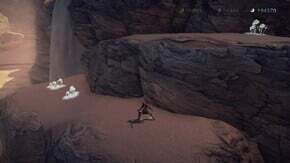 이제 유사 강이 흐르는 넓은 공터로 이동합니다. 아래 사진의 모래 폭포 오른쪽 뒤편으로 이동하면 다음 보물 상자를 찾을 수 있습니다.