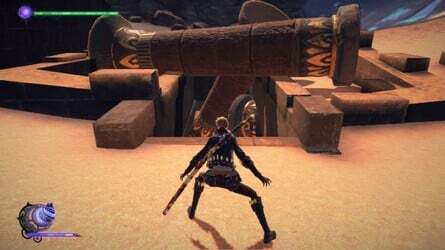 지금 아래 지역으로 뛰어내린 후 뒷벽으로 가면 비활성 출입구를 찾을 수 있습니다. 이 메달리온 조각 을 찾으려면 기둥과 주변의 아이템을 부수세요.