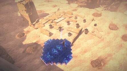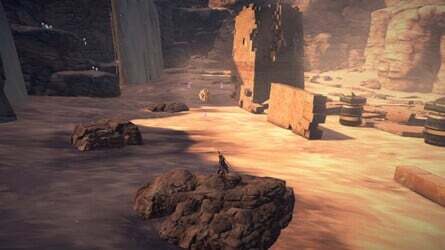 이제 이 발굴 지점에서 왼쪽으로 가면 전방에 보이는 다음 적 무리와 몇 개의 기둥이 있습니다. 여기에서 절실히 필요한 물인 다음 발굴 지점을 찾을 수 있습니다. 또한 이 작은 영역에 숨겨진 모든 항목을 파헤쳐 또 다른 Bewitchment 를 얻었을 것입니다.