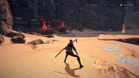 Chaotic Rift로의 아주 짧은 여행 후 이제 뜨거운 사막 지역으로 자유 낙하하는 자신을 발견하게 될 것입니다. 지금 가장 먼저 해야 할 일은 체셔와 검을 찾는 것입니다. 여기 모래 언덕으로 앞으로 달려가면 처리해야 할 적 몇 명을 만날 것입니다. 이제 지치기 시작하고 카메라는 체셔의 신기루가 나타나는 시퀀스를 보기 위해 측면으로 전환합니다. Bewitchment 를 얻으려면 이 중 하나를 세 번 터치하십시오 .