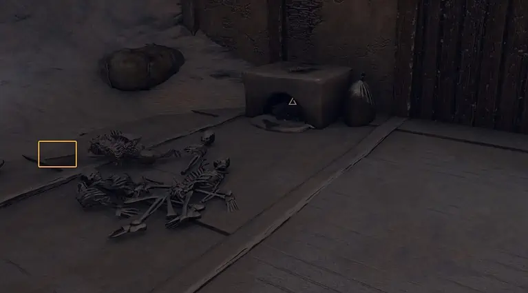 이 슬로프의 마지막 단계는 하단의 부서진 돌담에 도달하는 것입니다. 벽에 있는 구조물을 나가기 직전에 바닥에 있는 해골에서 에르빌의 일기를 집을 수 있습니다.