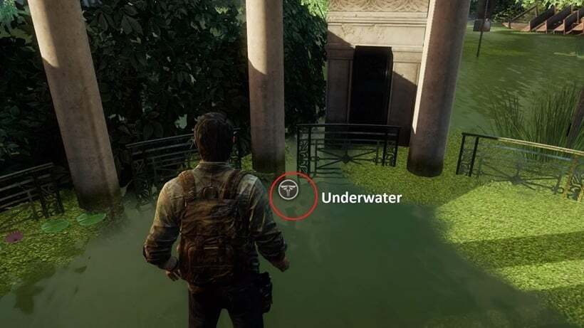 조엘이 방독면을 쓸 때까지 어두운 복도를 따라가세요. Ellie는 짧은 컷신을 위해 자동으로 당신을 옆으로 끌어당깁니다. 컷신이 끝나면 두 명의 순찰 경비원을 찾으십시오. 그들을 죽이거나 그들에게 몰래 다가가 지하철 차량을 향해 전진하십시오. 반대편으로 나와 어두운 지하철 터널을 따라 계속 내려갑니다. 왼쪽에 있는 기차를 타고 깊은 물에 닿을 때까지 앞으로 달려가십시오. 를 사용하여 물 속으로 잠수