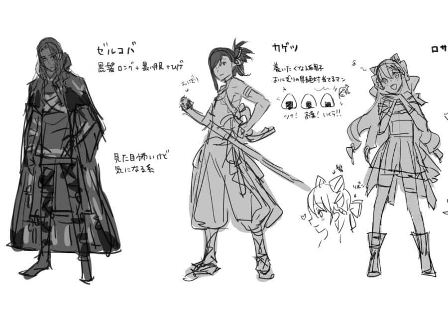 "첫 번째 캐릭터는 Alear와 Céline이었습니다. 기본 남성 캐릭터와 여성 캐릭터로 시작하는 것이 가장 좋다고 생각했습니다. 이것이 초안의 대략적인 디자인 중 일부입니다.