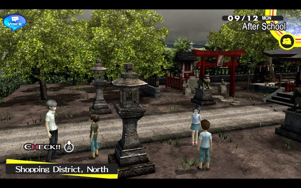 하얀 옷을 입은 여인이 먼저 빨간 금붕어에 대해 물을 것입니다. 그녀와 다시 대화하면 그녀는 지붕에 그물이 있다고 말할 것입니다. 메시지가 표시되면 나비 그물을 수집하기 위해 '예'를 선택합니다. 낮에 신사에 있는 소년에게 그물을 돌려주려고 시도하면 소년은 대신 플레이어에게 벌레 잡는 방법을 가르쳐 줄 것입니다.