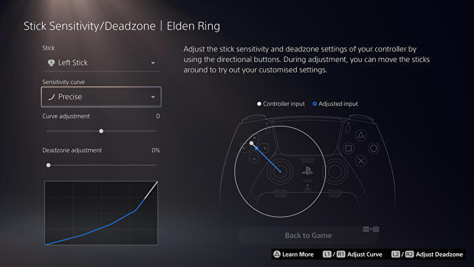 세 번째 포인트는 아마도 가장 혁신적인 업그레이드인 후면 패들일 것입니다. Xbox Elite 컨트롤러와 마찬가지로 DualSense Edge 스포츠는 자석으로 부착되어 쉽게 교체할 수 있는 메탈 백 버튼을 자랑합니다. 상자에는 길고 짧은 두 가지 스타일이 포함되어 있으며, 위치 측면에서 여분의 약지에 완벽하게 맞습니다. 결정적으로 두 가지 추가 입력에서 기대할 수 있는 모든 이점을 제공합니다. Elden Ring 및 기타 Soulslike 타이틀의 경우 카메라 제어를 위해 아날로그 스틱을 살짝 밀면서 실행하기 위해 원형 버튼을 누르기 위해 더 이상 어색한 집게발 위치를 지정하지 않아도 됩니다. DualSense Edge를 사용하면 대신 해당 원형 '실행' 버튼 기능을 후면 오른쪽 패들에 할당할 수 있습니다. 네모가 아닌 왼쪽 패들에 아이템 사용을 지정하면 작업이 완료됩니다. 이제 오른쪽 엄지손가락이 전투 중에 스틱을 떠날 필요가 거의 없습니다.