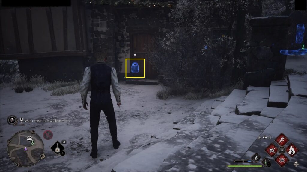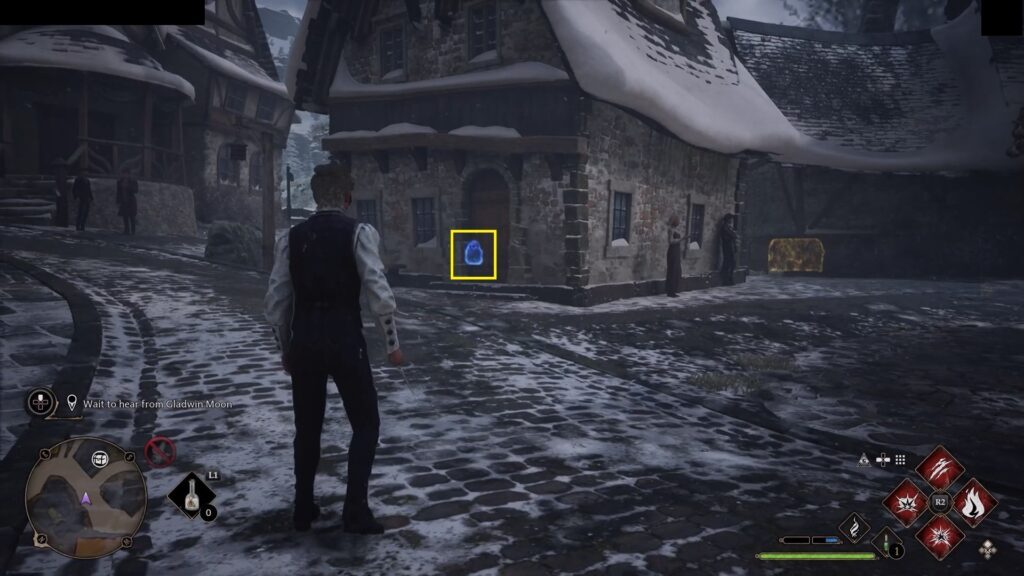 아래 그림과 같이 South Hogsmeade Floo Flame 뒤에 있는 레벨 3 잠긴 문을 엽니다 . 집에 들어가서 계단을 오르면 위층에서 수집 상자를 찾을 수 있습니다.
