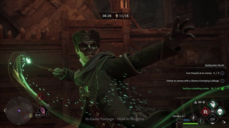- Last Enemy Finisher = Accio + Glacius/Arresto Momentum + Petrificus Totalus - 이것은 마지막 적에게만 작동하며 적들이 작거나 Petrificus Totalus로 죽일 수 있는 경우에만 작동합니다. 그들을 끌어당겨 제자리에 고정시켜 전투를 끝내고 마무리합니다.