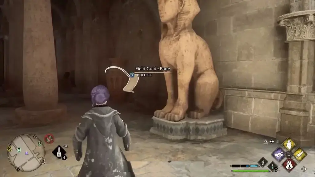 스핑크스 조각상 근처의 같은 지역에서 전방의 기둥 주위를 날아다니는 페이지 루프를 찾을 수 있습니다. 그것을 잡으려면 Accio를 캐스팅하십시오.