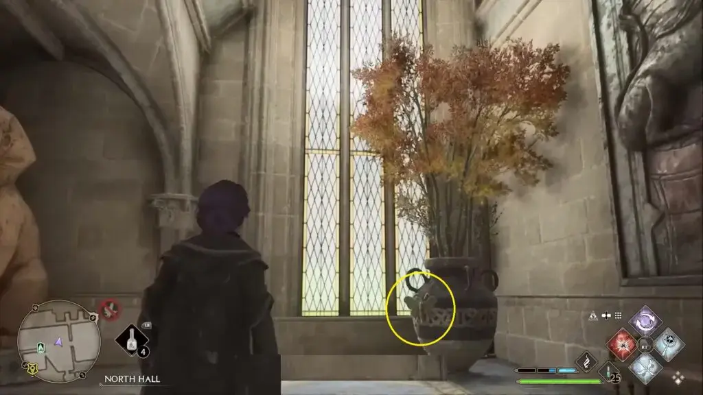 Hogwarts 북쪽 출구 Floo Flame으로 빠른 이동. 아치형 통로를 지나 바로 좌회전하여 위를 올려다보면 용 그릇을 찾을 수 있습니다. 그릇에 Confringo를 캐스팅한 다음 Accio를 캐스팅하여 잡습니다.