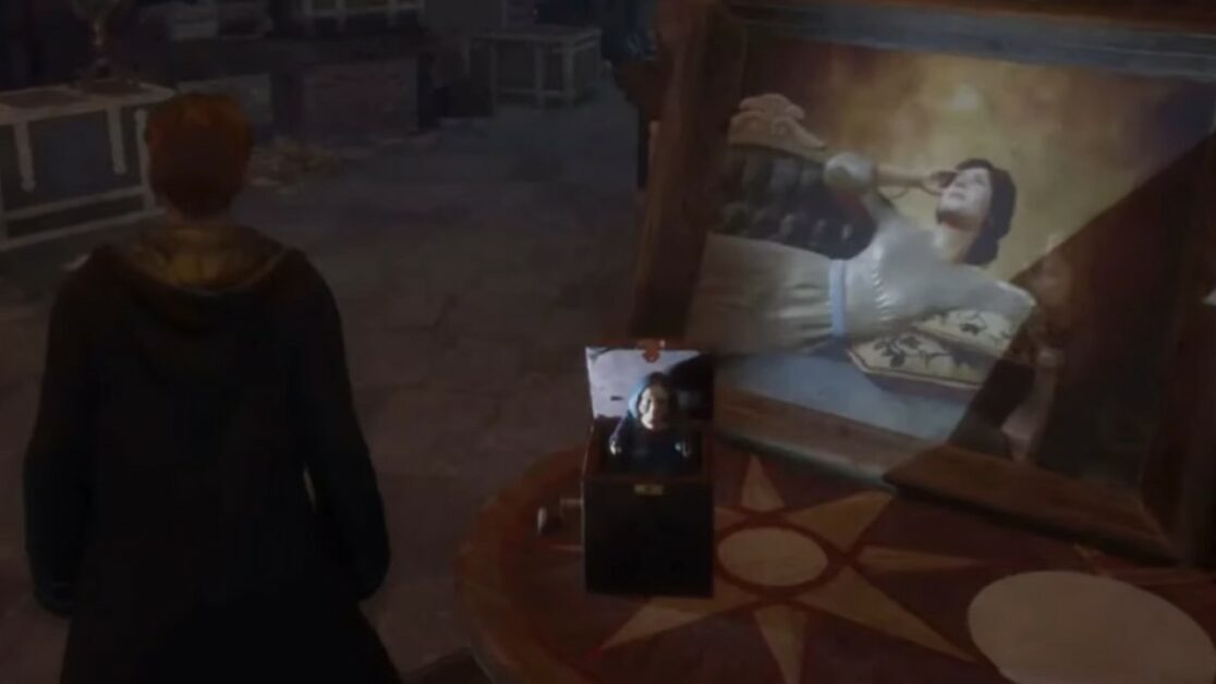 멧돼지 머리와 탁자 위의 그림이 있는 지역으로 걸어가야 합니다. 상자는 그림 바로 옆에 있고, 상자에 가까이 다가가면 사람이 튀어나옵니다. 맞히셨군요! 그것은 Severus Snape 교수이며 Hogwarts Legacy의 다른 타임 라인조차도 그를 Hogwarts 구내에서 멀어지게 할 수 없었습니다.