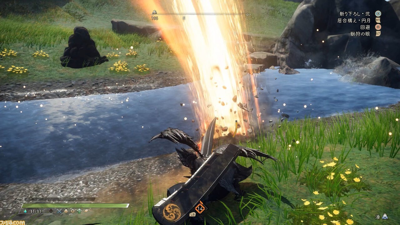 “잡는다”는 쓰러뜨리고 나서 “도도메를 찌르는”으로 소재를 입수하는 방법과 같지만, “잡는다”의 경우는 순간에 토도메까지 찌르고 곧바로 소재를 받을 수 있는 것이 특징.