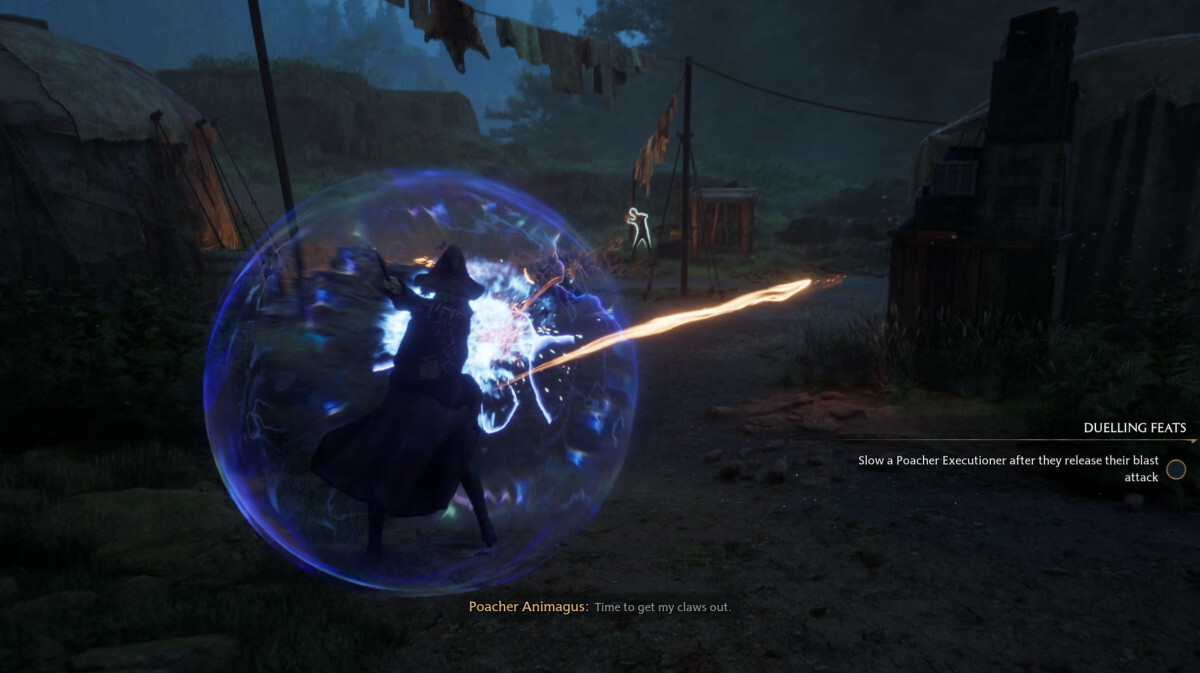 Protego는 몇 초 동안 지속되며 대부분의 근접 및 마법 공격을 차단할 수 있는 방어막입니다. 맞기 직전에 프로테고를 활성화하면 주문이 "완벽한 프로테고"로 바뀌어 공격자에게 주문을 반사하고 근접 공격자에게 피해를 줍니다.