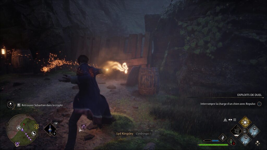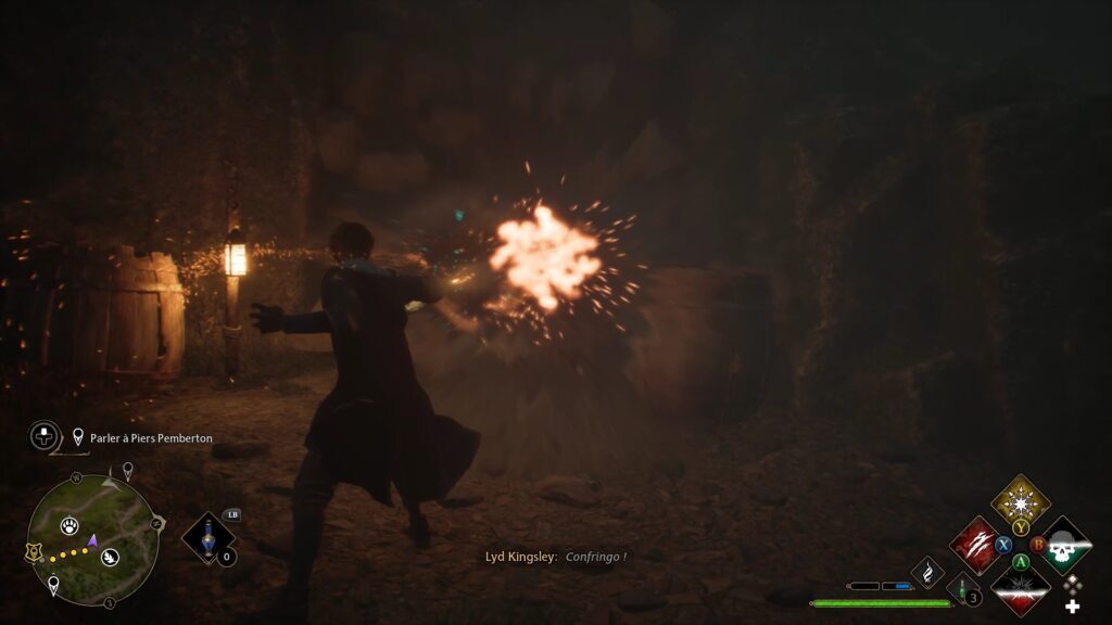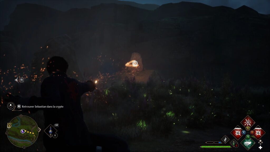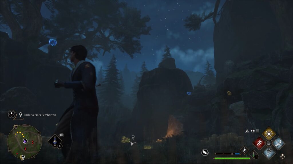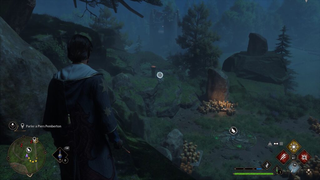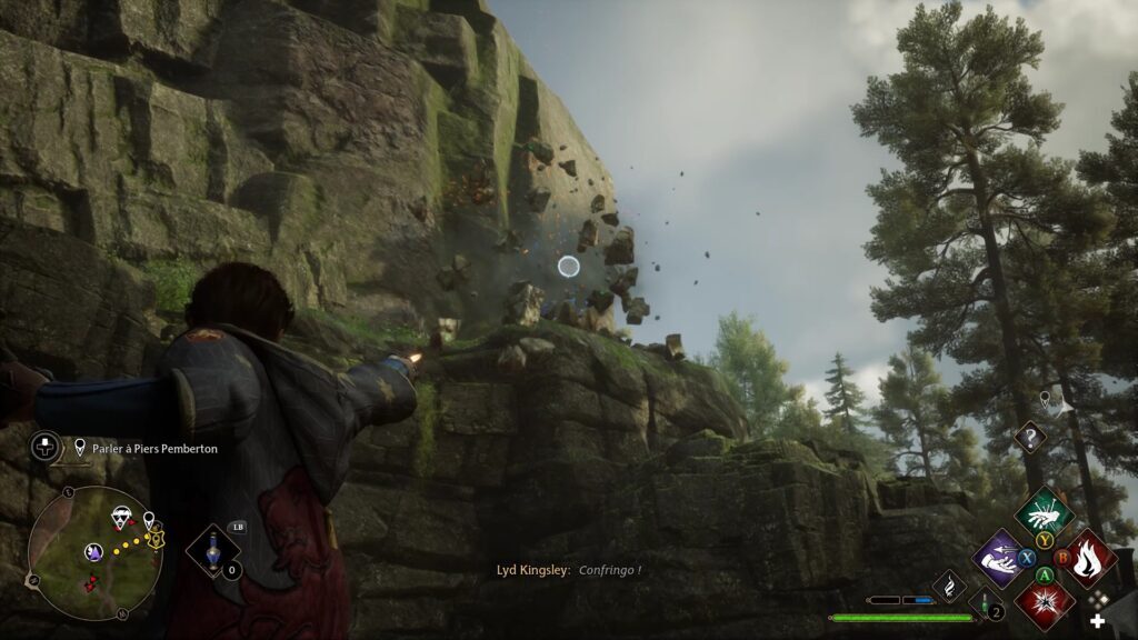 Merlin 테스트는 Floo Flames "Campolard-En-Haut"의 남쪽에 있습니다. Revelo를 사용하여 5개의 강조 표시된 돌을 발견하십시오. 스톤에 콘프링고 파워를 사용하여 스톤을 폭발시키고 시험을 완료하세요.