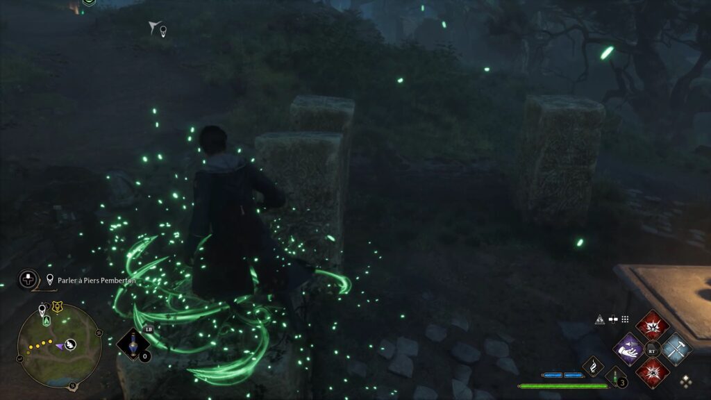 마지막 시련은 계곡의 동쪽, 개 굴의 남서쪽입니다. Revelo 주문을 사용하여 시작 지점 주변에 강조 표시된 세 개의 돌을 찾으십시오. 반딧불이로 돌에 동력을 공급해야 합니다. 빛 근처의 높은 바위에서 반딧불이를 찾아보세요. Lumos 주문을 사용하여 반딧불이를 돌로 가져옵니다. 출발점 반대편으로 올라가는 길에는 통 근처에 반딧불이가 보인다. 계속해서 나무 장벽에 도달하십시오. 장벽에 confringo 주문을 사용하여 마지막 반딧불에 도달하십시오.